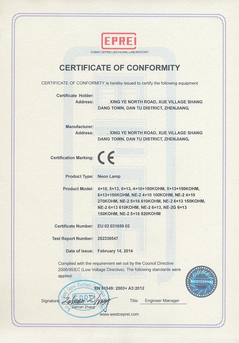 OCM Neon Ampul CE Belgesi